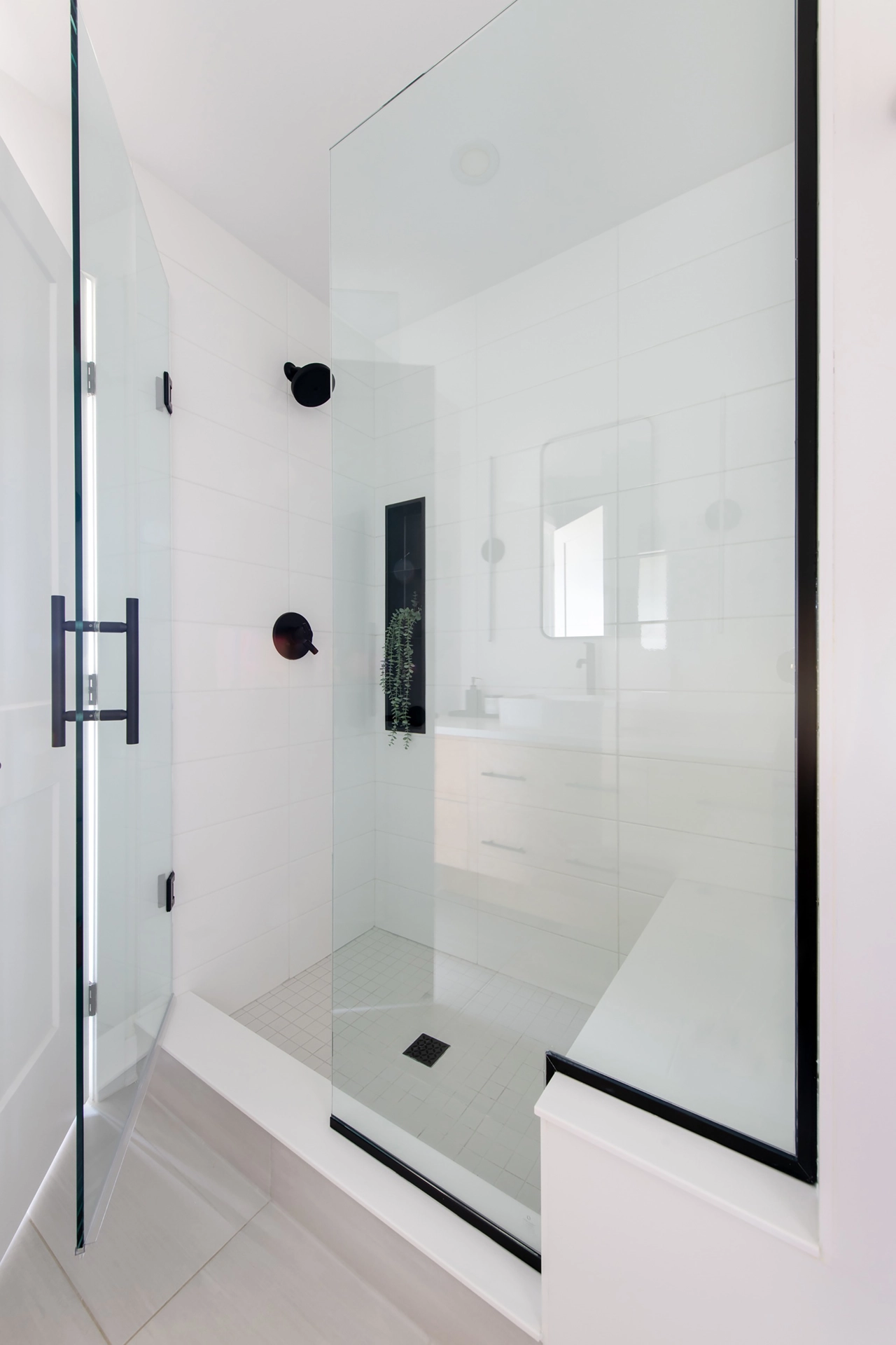 - 3’ x 5’ tiled shower with bench and build-in shower niche in bath 1