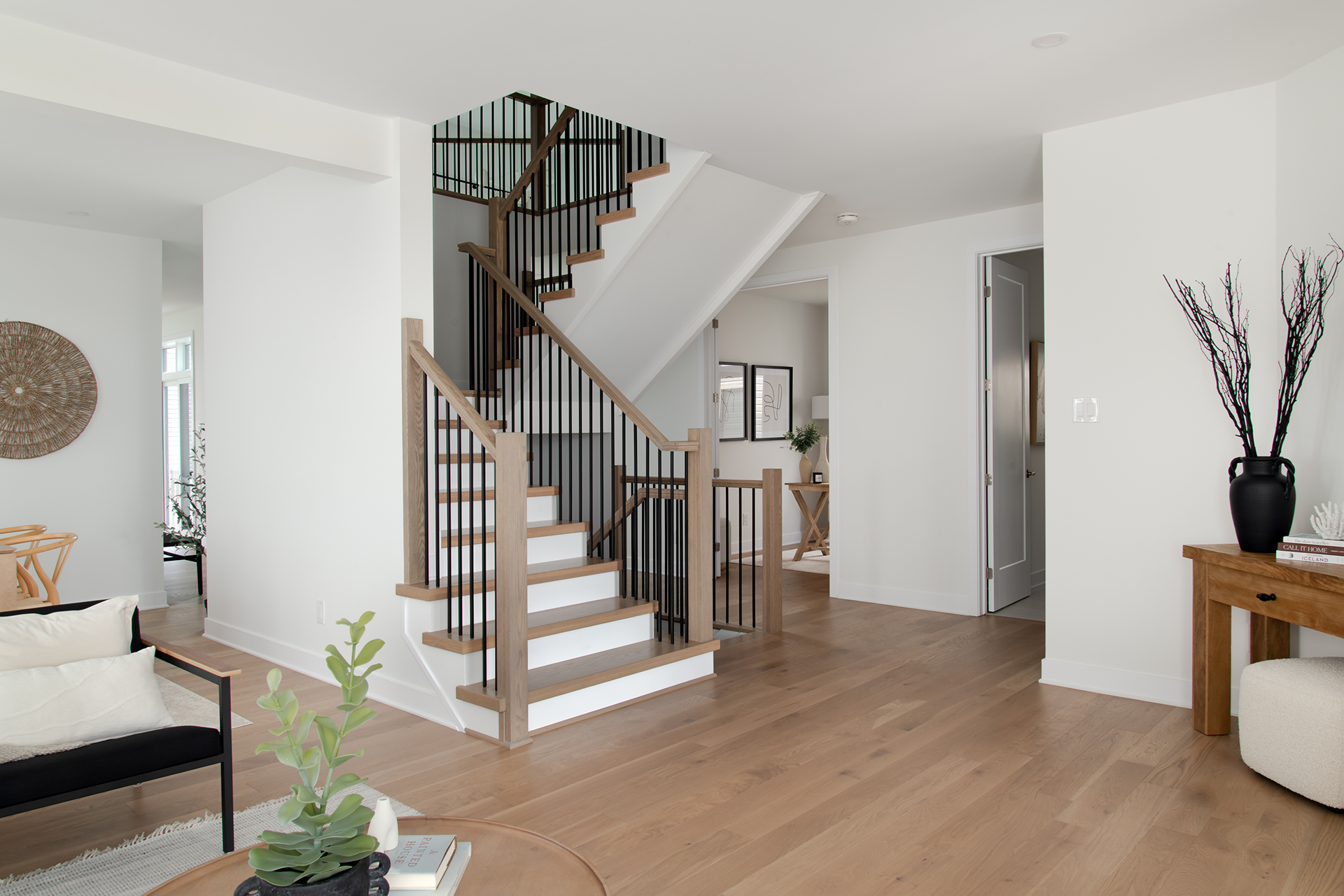 - Oak hardwood staircase from ground to bedroom and basement floors