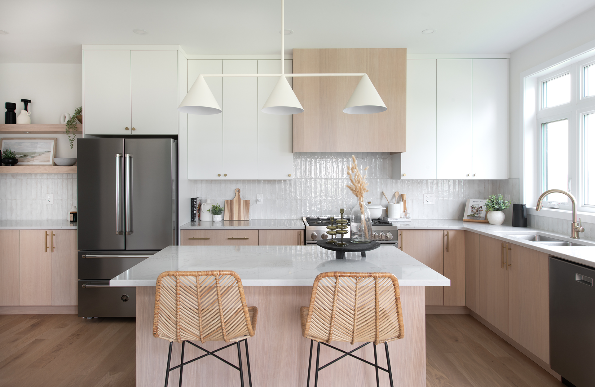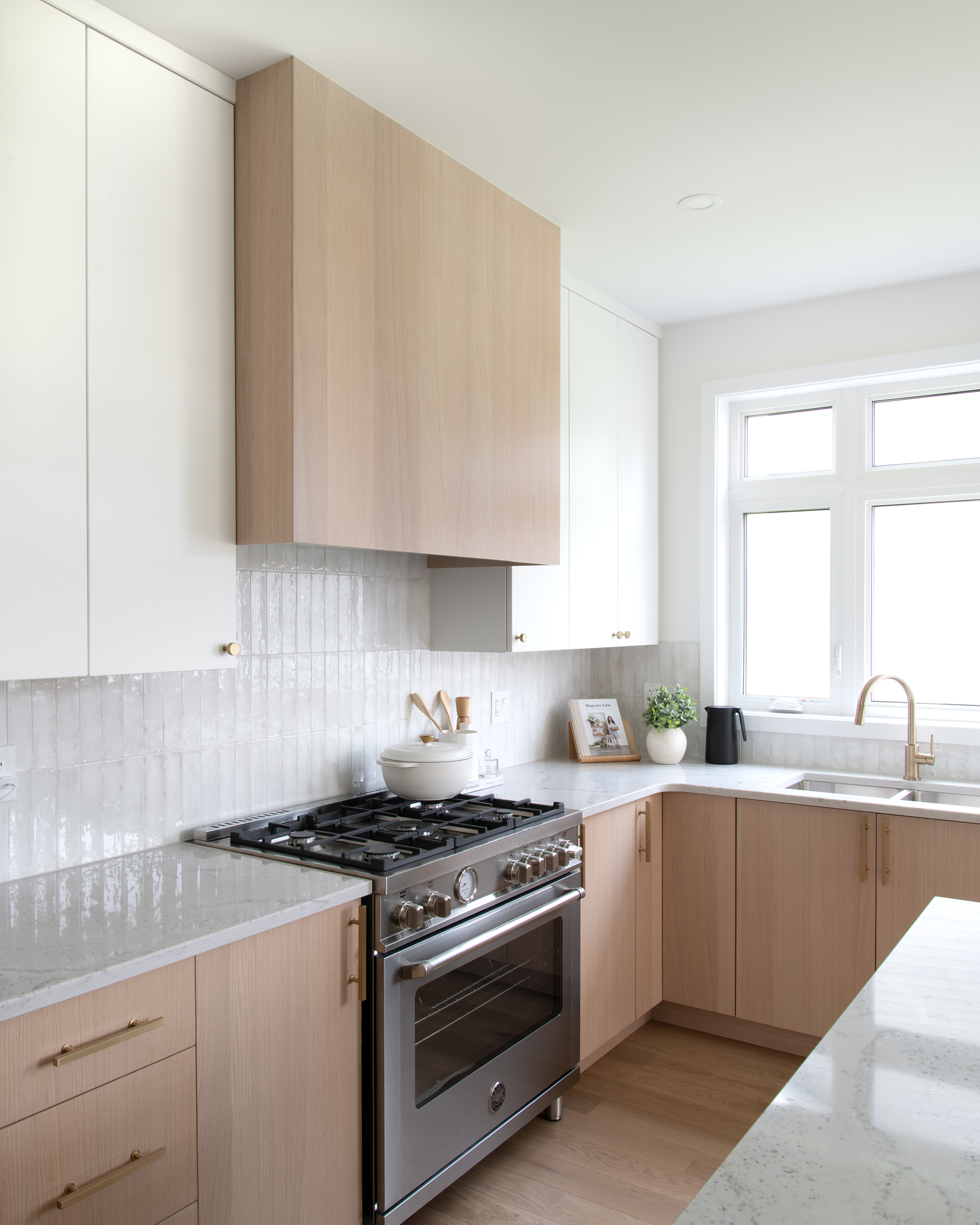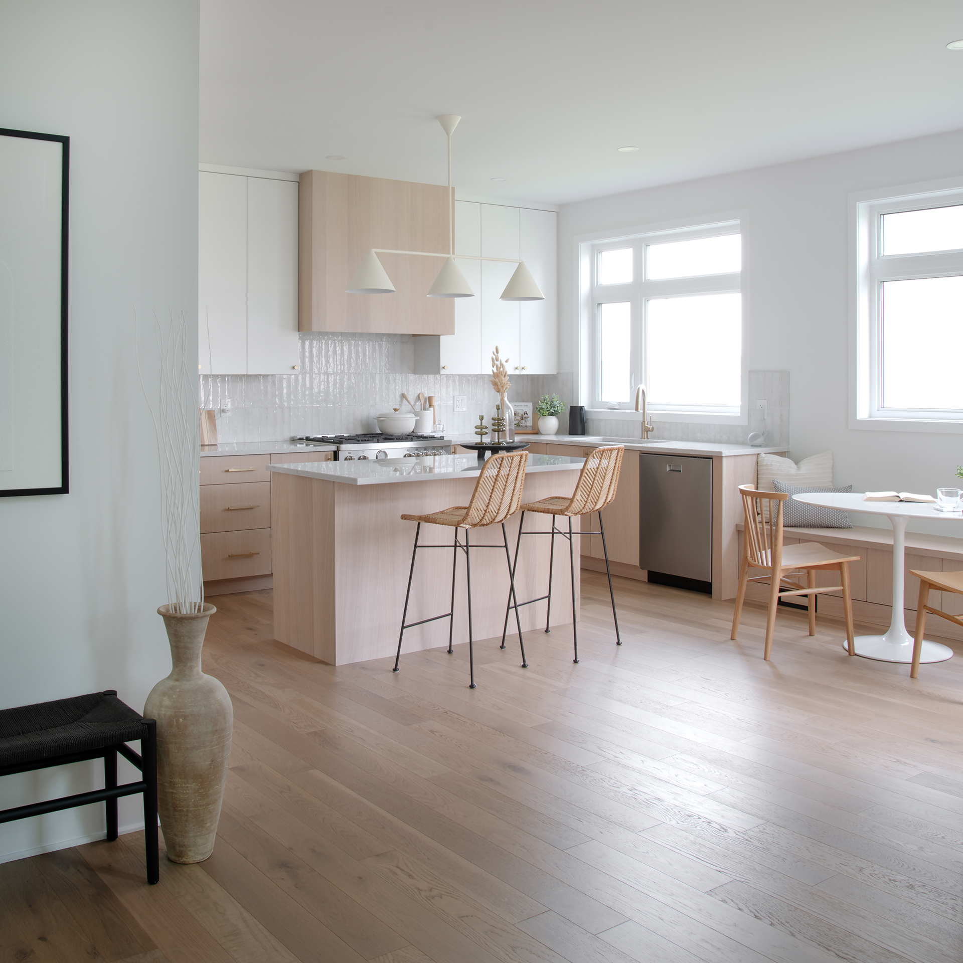 - Custom bench under window in kitchen